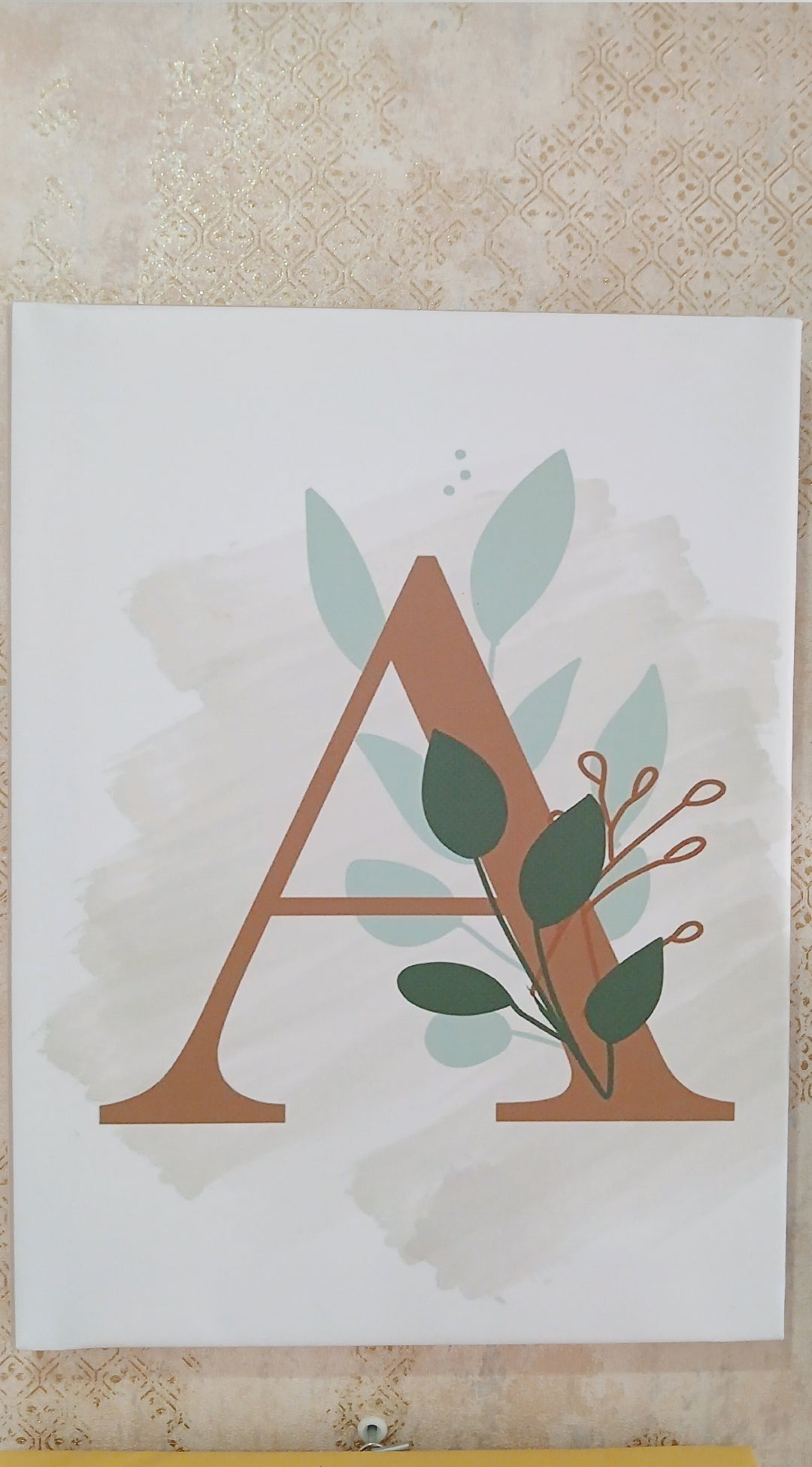 • تصميم جذاب: رسومات حيوانات الغابة المحبوبة مثل الفيل، الأسد، الزرافة، النمر، والثعلب، مع  حرف بداية اسم طفلك "A" كبير يضيف لمسة شخصية وجمالية.