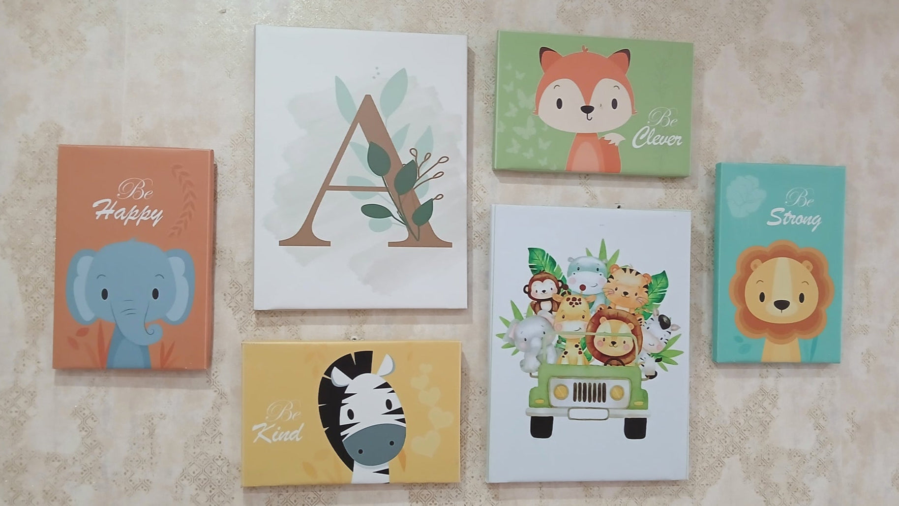 مجموعة من اللوحات الجدارية الرائعة المصممة خصيصًا لتزيين غرف الأطفال، بأسلوب عصري وألوان جذابة. تتكون التشكيلة من ست لوحات تحمل رسائل إيجابية وشخصيات حيوانات الغابة اللطيفة التي يحبها الأطفال.