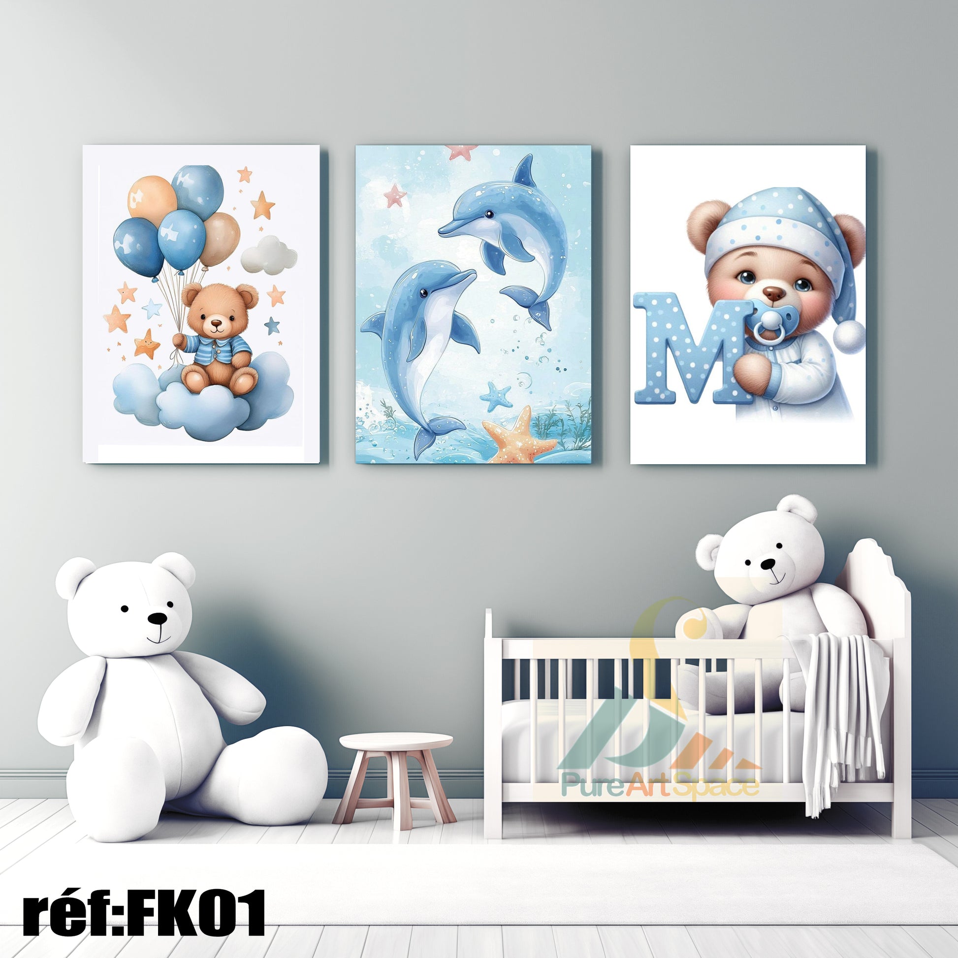 اجعل غرفة مولودك الجديد ملاذاً من الهدوء والسعادة مع هذه المجموعة الرائعة المكونة من 3 لوحات. تتميز اللوحات بتصميمها اللطيف وألوانها الهادئة التي تخلق جواً مريحاً ومثالياً لغرفة الطفل.